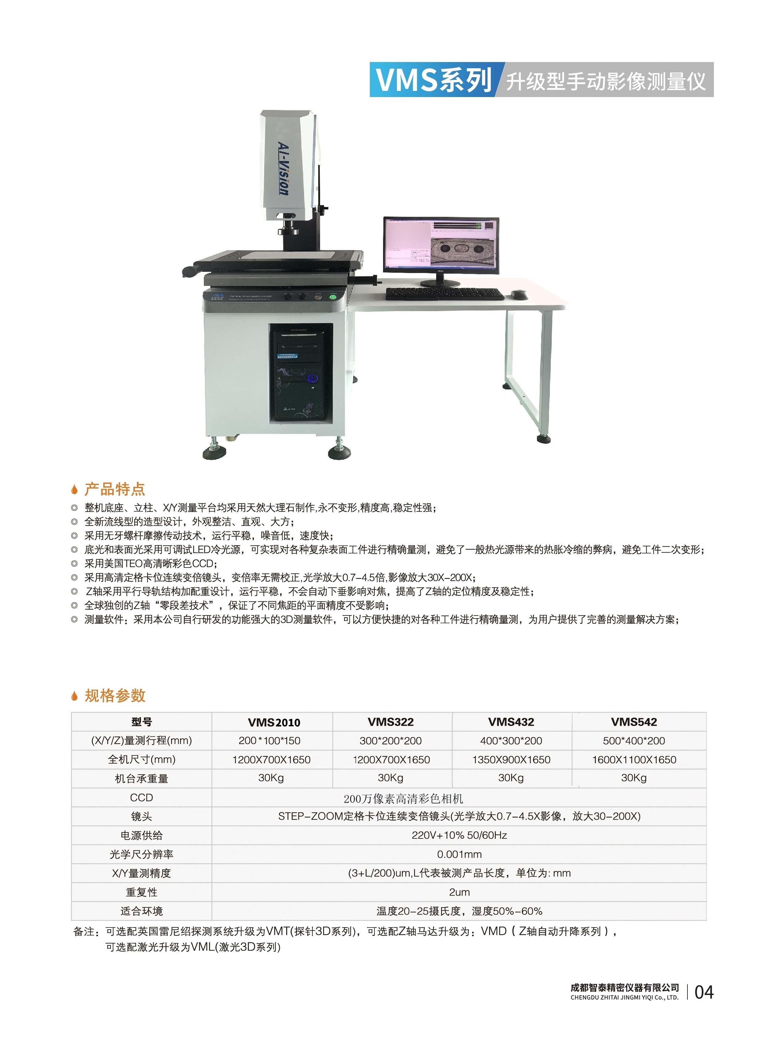 成都智泰精密儀器有限公司專注于精密測(cè)量?jī)x器,人工智能,智能制造領(lǐng)域,專業(yè)從事智能視覺自動(dòng)化檢測(cè)解決方案的貿(mào)易型企業(yè)。公司成立于2011年,位于天府之國(guó)成都,現(xiàn)有行業(yè)精英十余人,辦公倉(cāng)儲(chǔ)面積200余平米。 公司主要產(chǎn)品為精密光學(xué)影像測(cè)量?jī)x,精密輪廓形狀測(cè)量?jī)x,精密機(jī)器人定位系統(tǒng),精密智能視覺尺寸檢測(cè)儀器,精密表面缺陷智能檢測(cè)設(shè)備,工業(yè)工程特種機(jī)器人。 公司憑借過硬的技術(shù)實(shí)力和產(chǎn)品方案,率先進(jìn)入智能視覺自動(dòng)化檢測(cè)領(lǐng)域,推廣以精密智能視覺自動(dòng)化檢測(cè)為基礎(chǔ)的機(jī)器人自動(dòng)化應(yīng)用,公司不斷整合上下游的資源,擁有巨大的全產(chǎn)業(yè)鏈優(yōu)勢(shì)??蛻羧后w覆蓋了我國(guó)精密制造業(yè)的多數(shù)領(lǐng)域,包括航空、航天、軍工、汽車、新能源、光伏、食品,精密電子、精密機(jī)械、模具、PCB、LCD、五金、塑膠、醫(yī)療、教育、計(jì)量及科研院所等行業(yè)。 公司創(chuàng)新的產(chǎn)品能滿足生產(chǎn)與制造行業(yè)客戶的要求,訓(xùn)練有素的工程師能及時(shí)提供多種技術(shù)服務(wù),如解...
